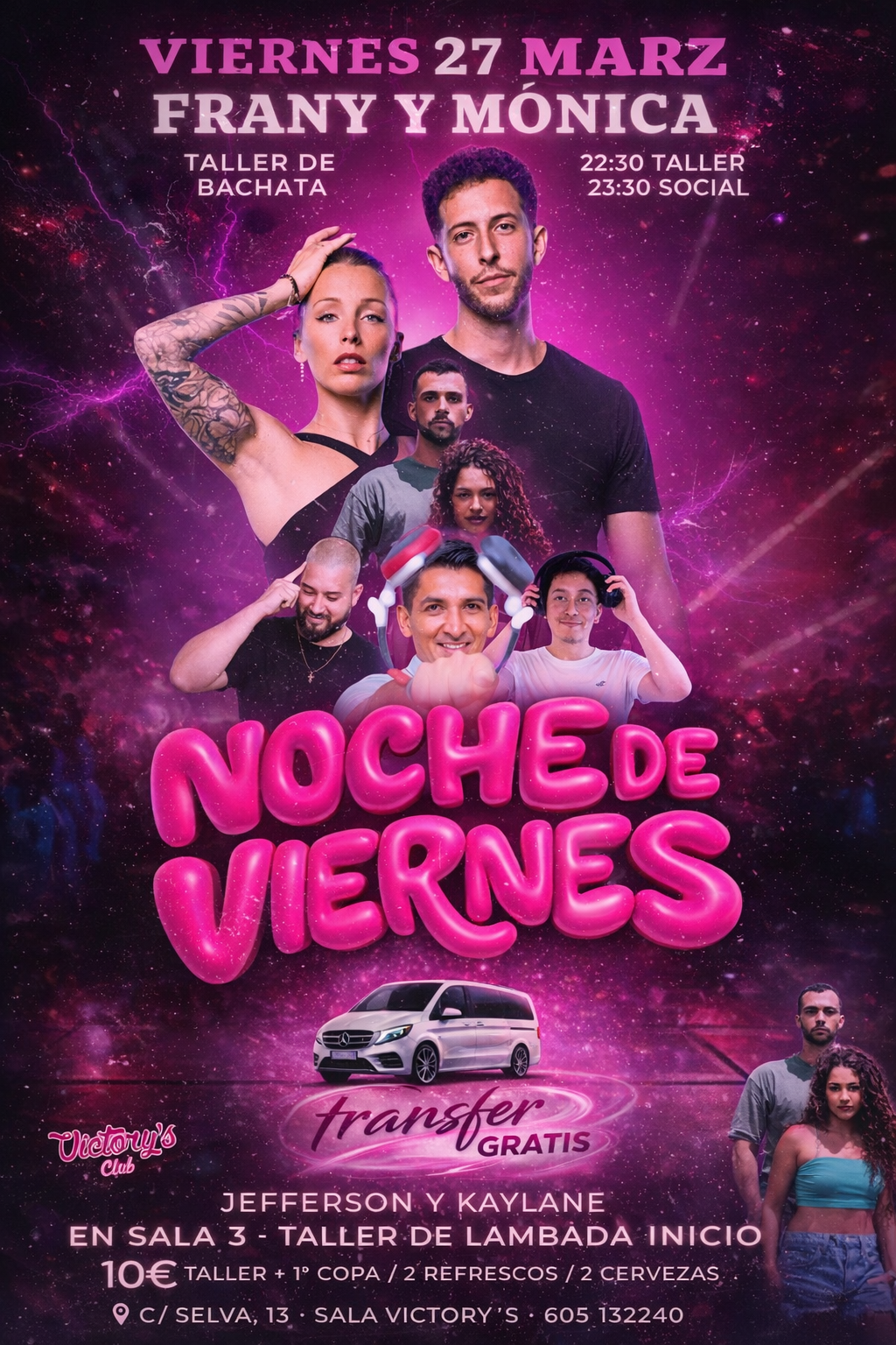 Taller de bachata con Frany & Mónica a las 22:30, seguido de social desde las 23:30.